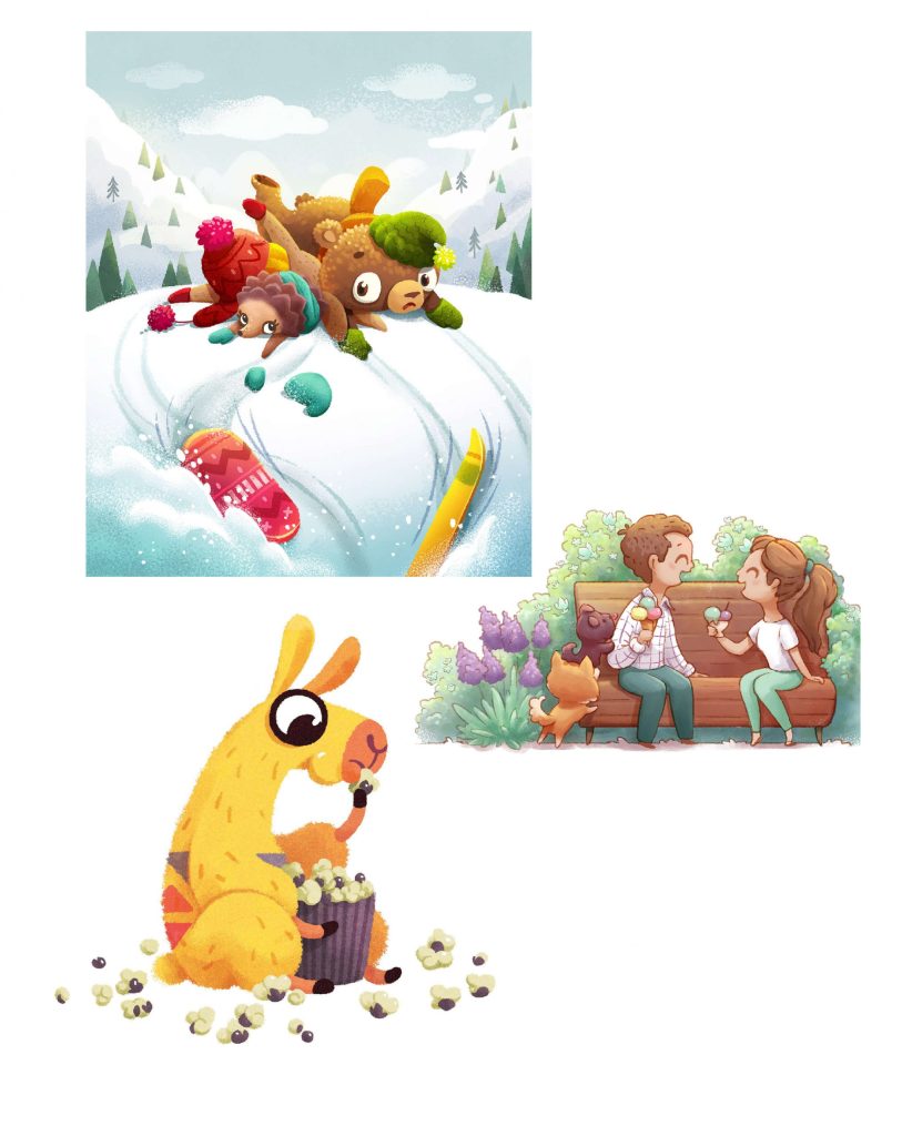 Alena’s illustrations remind us about the best time we had – our childhood when we were full of life, happiness, joy, and heart ease.